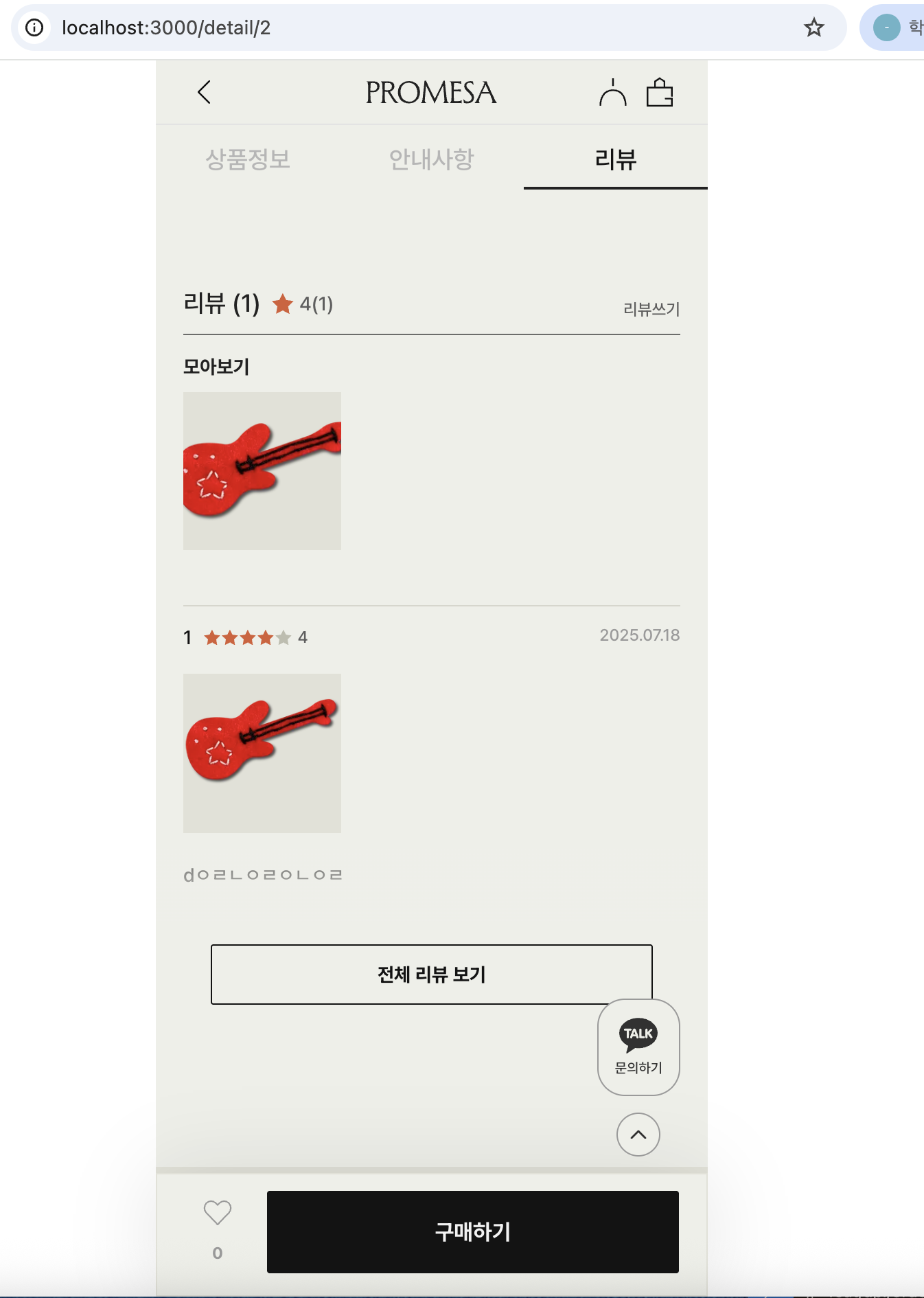 리뷰 기능은 특히 시간이 오래 걸린 부분이었다. 단순히 글만 등록하는 게 아니라 이미지도 함께 업로드해야 했기 때문에 프론트와 어떻게 통신할지 고민이 많았다. 실제로 지그재그 같은 쇼핑몰 사이트를 직접 참고하며 플로우를 정리했다. 또한 리뷰 검증 로직에서도 고려할 사항이 많아 여러 번 다듬으며 완성해갔다.